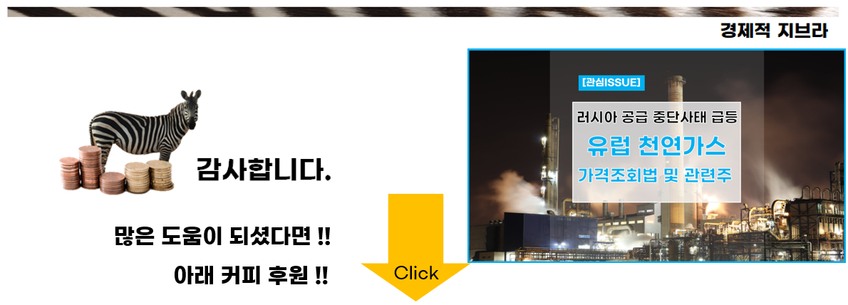 천연가스의 주요생산국은 미국과 러시아로 우리나라는 미국의 LNG 운반선을 통해 수입하고 있습니다. 유럽은 LNG운반선의 비용보다 적은 러시아산 천연가스를 배관을 통해 공급 받고 있습니다. 이처럼 공급처가 다르기 때문에 지역별로 천연가스의 가격은 차이가 날 수 밖에 없기에 우리나라에 미치는 영향은 크지 않을 수 있다는 점입니다.