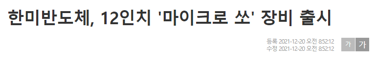 - 12월 20일 12인치 마이크로 쏘 장비 출시로 다양한 인치 선택 가능한 라인업 구축
