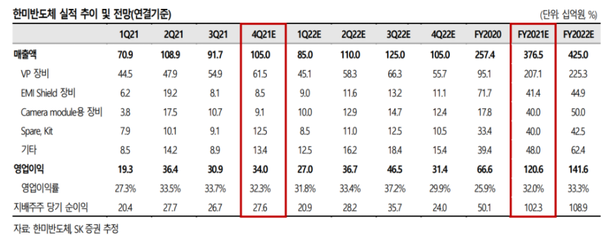 - 22년 지속되는 반도체 공급 부족으로 인하여 고객사들의 장비 증설이 기대되는 만큼 장비 수요 클 것으로 예상