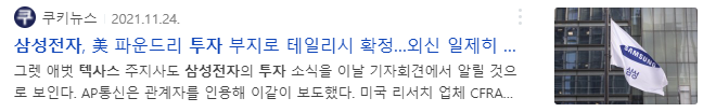 - 11월 삼성전자가 170억 달러 (약 20조2,079억)을 투자하여 미국 텍사스주에 반도체 공장 설립 발표