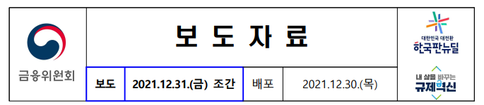 2021년의 마지막날 금융위원회에서 2022년 새해부터 달라지는 금융제도라는 제목으로 보도자료를 공개하였습니다.