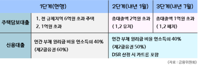- 총 대출액 2억원 초과시 차주단위 DSR이 적용되고, DSR 산정시 카드론 포함