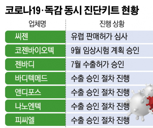 당장 플루로나의 이슈가 국내에는 크지는 않지만 만약 해외의 비슷한 사례가 국내에서도 나타난다면 독감 관련된 종목들 뿐만 아니라 독감과 코로나19의 동시진단이 가능한 키트주들에 수급에도 긍정적인 영향을 줄 수 있을 것으로 보여집니다.