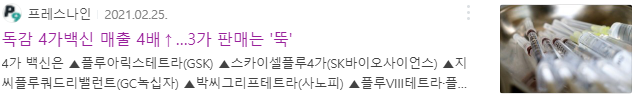특히 독감 관련된 21년도의 이슈는 3가 독감백신 보다는 4가 독감백신에 대하여 제약사들의 마케팅의 집중도로 인해 4가 백신은 매출이 4배 이상 증가하였고, 3가 제품들의 매출액은 90% 줄었다는 내용이 있었습니다.