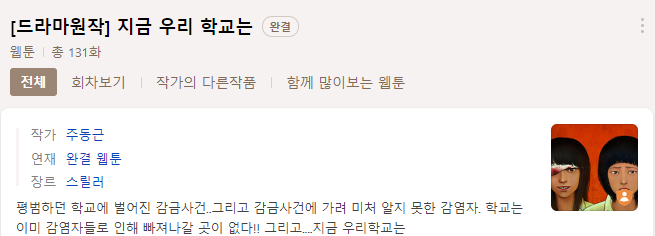 6. 원작 웹툰 : 지금 우리 학교는 (네이버 웹툰) - 주동근
