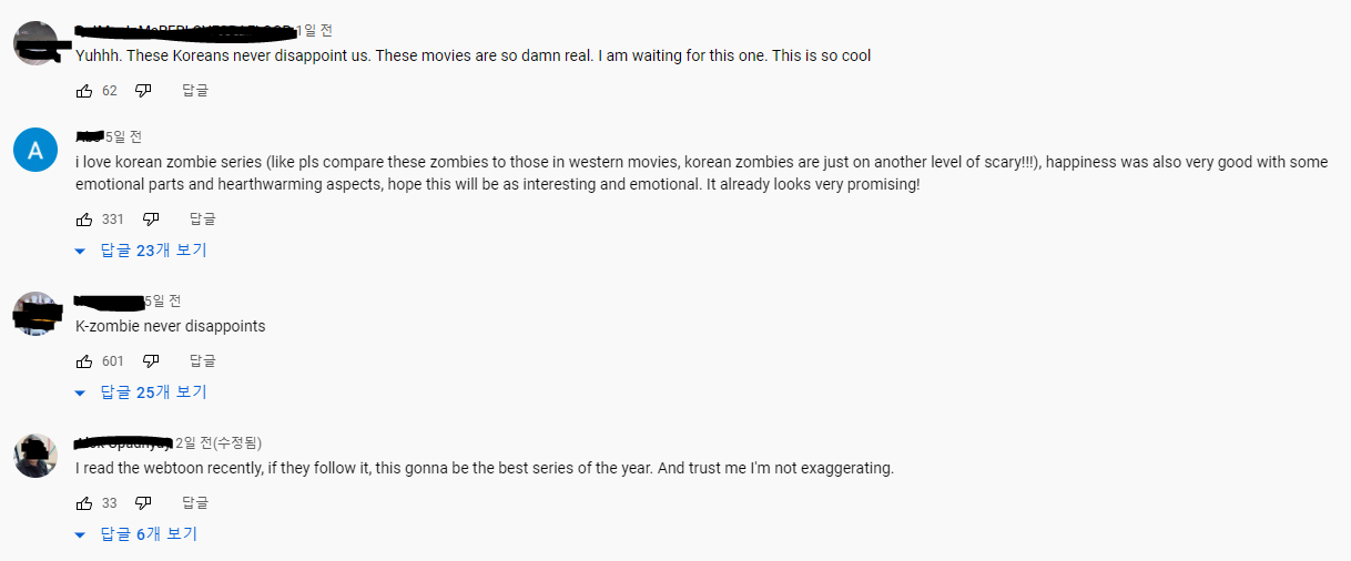 넷플릭스에서 트레일러 (예고편)을 공개하면서 벌써 외국인들의 기대감은 확인할 수 있습니다.
