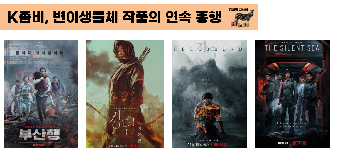 좀비 이야기를 다룬 부산행 (영화)의 해외 인기, 과거 조선시대의 좀비 킹덤 시리즈, 스위트홈, 지옥, 최근의 지옥의 바다까지..