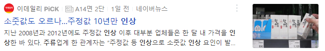 최근 주정값의 인상 이후에 주류 제품의 가격 상승에 대한 기사를 접할 수 있었습니다. 과거 2012년 이후 10년만에 인상인 만큼 큰 이슈가 되고 있습니다. 사실 코로나19 이후 주류의 소비량은 감소할 수 밖에 없었는데 주정값 인상, 병뚜껑 공급가 인상 등 이라는 이유가 붙어 있지만 여러가지 기업활동에 인상을 할 수 밖에 없는 어려운 환경이 조성되고 있는 모양새입니다. 하지만 아직 공식적으로 가격을 얼마 올린다던지, 올릴 것이라는 구체적인 보도는 없지만 원재료의 상승만으로 이렇게 이슈가 되었습니다.