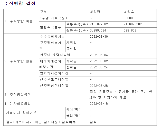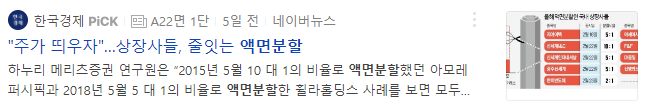 - 특히 약세장에서 단가가 싸고 물량이 넘치는 종목들이 액면병합을 통해 이미지 변화를 꾀하려고 함