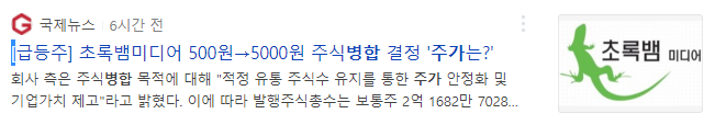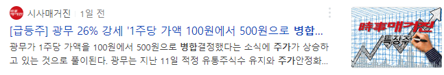 - 금주에도 광무 및 초록뱀미디어 주식병합 결정 공시 → 주가 상승