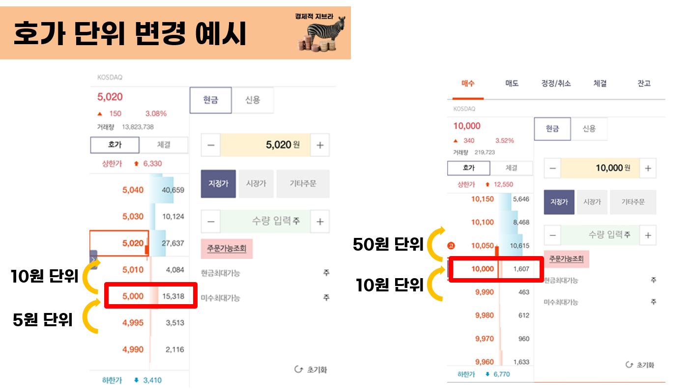 ※ ETF의 경우 금액과 관계없이 호가단위 5원으로 고정
