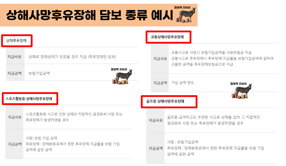 대표적인 상해담보는 아래와 같습니다.