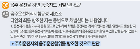 - 도로교통법은 따로 존재하지 않으나 형법에서는 음주운전방조죄 성립이 됨