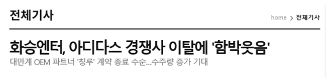 다른 기업에 비해서 사업 아이템이나 주문회사의 상황이 좋지 못하여 현재의 심심한 흐름이 당분간 지속 될 수도 있다고 생각될 순 있어도, ‘화승인더’는 서두에 언급한 것 처럼 주 사업이 신발사업부 이며, 아디다스의 주문을 받아 생산하고 있습니다. 또한 작년인 19년 1월 스포츠 모자 생산업체인 Unipax를 인수하며 운동화뿐만 아니라 종합 스포츠 생산업체로 진화하고 있으며, 이를 통해 나이키와의 연결고리도 형성되었습니다.