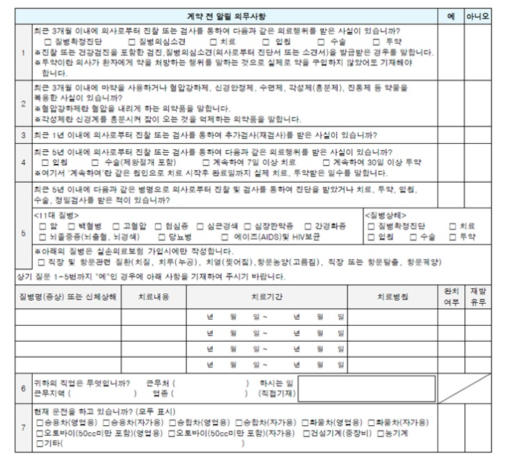 - 보험사는 고지의무 내용을 토대로 보험가입 가능여부나 조건부 승인, 보험료 등을 산정하기에 매우 중요