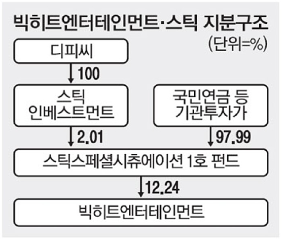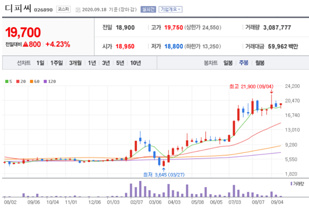 - 디피씨의 자회사인 스틱인베스트먼트사가 빅히트의 지분을 12% 보유한 것으로 BTS 이슈가 있을 때 마다 대장주 역할을 함