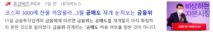 최근 대한민국의 증시가 맞나 싶을 정도로 불기둥장이 지속되는 요즘 증권가 및 개인투자자에게 가장 뜨거운 이슈로 떠오른 것이 바로 제목에서 언급한 공매도 금지의 종료, 즉 공매도 재개 이슈입니다. 국민청원부터 시작해서 다양한 매체에서 언급되는 주제인 공매도 금지는 지난 2020년 3월 6일 시작되어 2020년 9월 15일 한번 연장되어 지금까지 이어져 오고 있으며 이는 2021년 3월 15일까지가 금지기간입니다. 추가적인 연장을 기대했으나 지난 11일 금융위원회의 예정대로 공매도 금지 조치를 3월 15일 종료할 방침이라고 발표함에 따라 찬성과 반대의 뜨거운 논란이 되고 있습니다. 최종적인 결정이 어떻게 되는 개인투자자라면 내 투자자산 포트폴리오에 큰 영향을 가져올 수 있는 내용인 만큼 제대로 알고 대응할 준비를 미리 하는 것이 필요한 시점입니다.