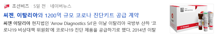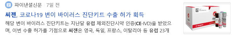 ▶ 긍정이슈2. 변이 바이러스 진단키트 수출 허가