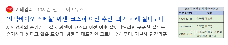 씨젠은 현재 코스닥시장 시가총액 5조를 회복하며 시가총액 3위의 기업입니다. 이러한 씨젠인 코스피 이전 상장을 검토하겠다는 소식 역시 향후 주가에는 긍정적으로 작용할 재료입니다. 아직 초기단계이며 그 시점을 알 수는 없지만, 코스피 상장이라는 사실 자체만으로도 굉장한 타이틀 효과가 발생하여 주가에 영향을 주게 됩니다. 글로벌 고객사 유치와 외국인 투자자 유치, 코스피 지수 편입을 통한 펀드 편입효과 등 효과가 있을 수 있기에 코스피 이전 소식은 이전이 이루어지기전에 긍정적인 재료로 해석되어 집니다.