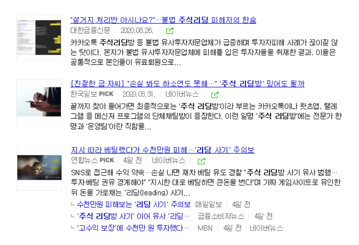 2020년 코로나19 사태와 더불어 소위 동학개미운동이라는 이름으로 많은 개인투자자들이 전반적인 상승장에 빚을 내어서 주식에 투자하기 시작했고, 여기저기 주식 종목 리딩을 무료, 유료로 해주는 곳도 함께 생겨났다. 그와 동시에 이를 통한 많은 피해와 사기행각 소식들이 들려오기 시작했고, 급기야 금융감독원에서도 움직이는 사태가 지금도 벌어지고 있다.