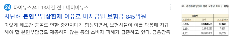 두번째, 본인부담금상한제의 문제는 일반 보험사의 보험금 지급에도 발생하고 있습니다.