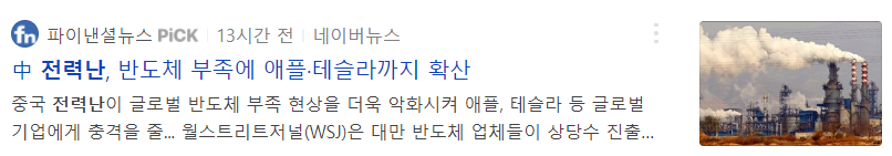 전문가들은 향후 5년간 전력 부족 현상이 더욱 자주 일어날것으로 예측하는 만큼 중국전력으로 인하여 영향, 더 나아가 타격을 받을 수있는 기업들은 대책을 마련해야하는 비상 상황입니다. 이 때문에 일시적인 문제로 지나갈 수 있는 헝다그룹 사태보다 장기적인 리스크가 훨씬 클 수 밖에 없습니다. 투자자 입장에서는 이러한 중국의 전력과 연관성이 있는 곳인지에 대한 정보 분석도 하나의 투자 분석 중 하나의 중요한 요소가 될 것으로 보여집니다. 물론 하나의 부품 기업이 전력문제로 생산에 차질을 빚고 대체가능 물량이 없다면 그 부품을 필요로하는 대기업의 최종 생산품도 존재할 수 있는 것이며 더 나아가 한 대기업의 흔들림이 글로벌 증시 전체에 영향을 주는 시대에서 민감한 부분으로 바라볼 필요가 있습니다.