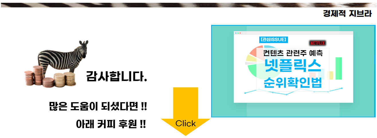 사실 이러한 오징어게임의 돌풍을 예상한 투자자들이 많지는 않았을 것이라 생각됩니다. 이번 오징어 게임을 시작으로 국내 다양한 작품들이 해외에서 어떠한 반응을 불러일으키는지 확인하는 것이 또 하나의 투자 정보획득 역량이 되어버린 가운데 넷플릭스 순위를 확인하는 방법을 공유드립니다.