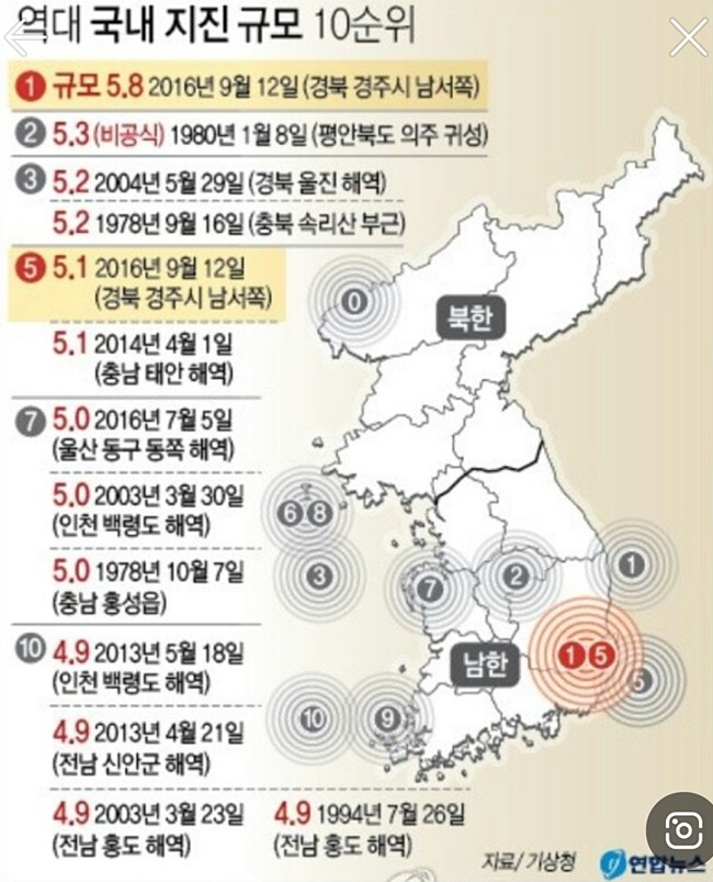 1. 2016년 7월 5일 울산 20시 33분 5.0 지진