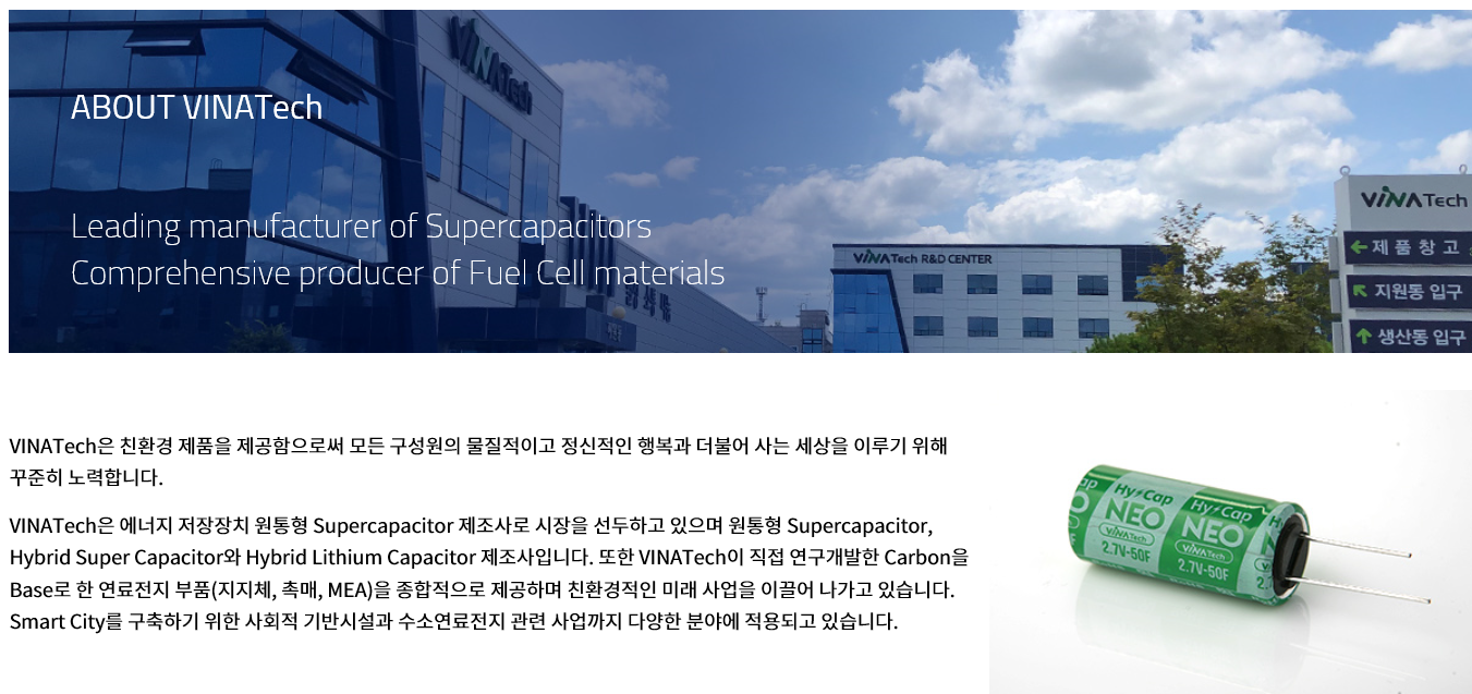 친환경에너지 저장장치인 슈퍼커패시터 (Supercapacitor) 부터 수소연료전지 관련 사업을 영위하고 있습니다.